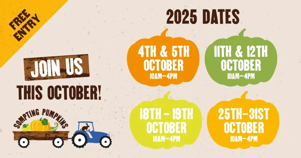 Follow us on our social channels for latest updates and information on our 2025 Pumpkin Picking at Sompting.